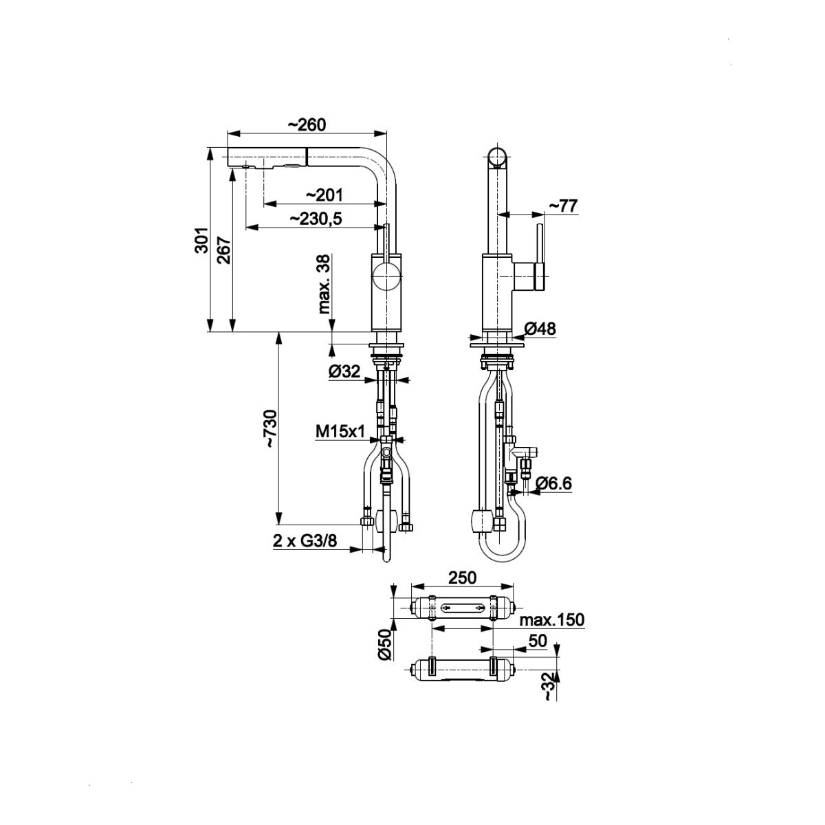 - Prúdenie vody [l/min]: zmiešaná voda 6 / filtrovaná voda 2