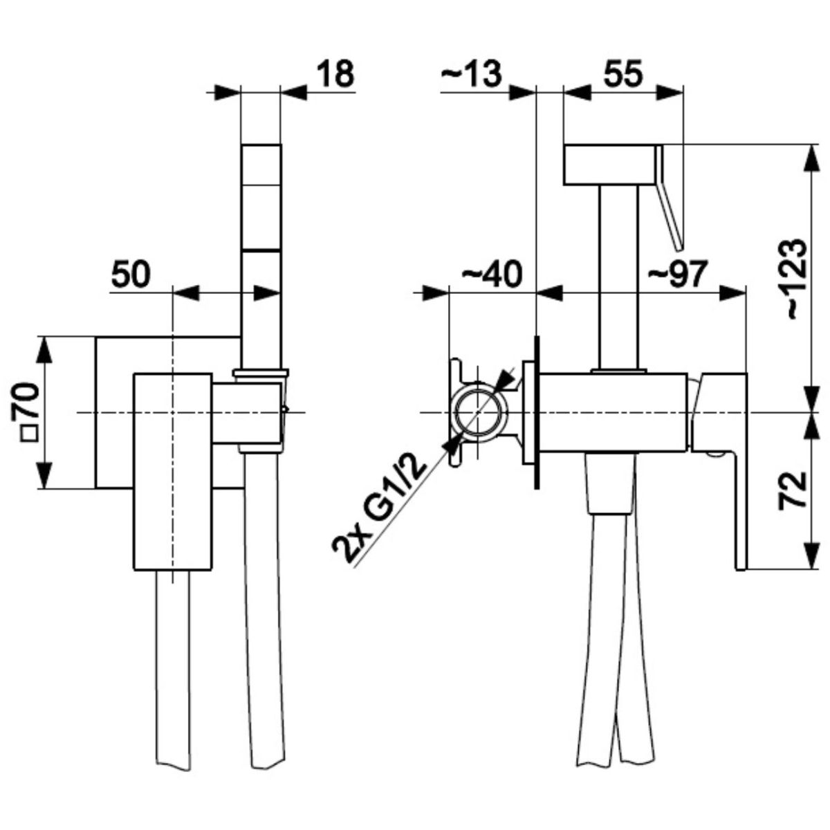 - Balík obsahuje: skrytú batériu na bidet, hadicu, jednofunkčnú rukoväť