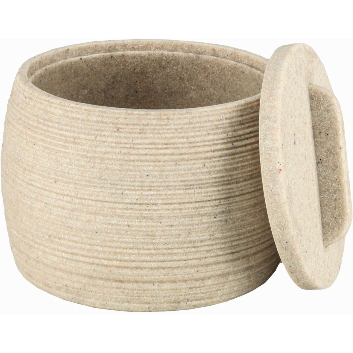 Séria Sand obsahuje najdôležitejšie kúpeľňové doplnky: pohár, dávkovač mydla, mydelničku, kozmetický kontajner a toaletnú kefu. Kúpeľňový pohár Sand je ideálny ako klasický pohár aj ako držiak na zubné kefky. Dávkovač mydla je vybavený praktickou pumpičkou, ktorá zabezpečuje presné dávkovanie. Miska na mydlo má mierne zdvihnuté okraje, takže mydlo zostáva na svojom mieste. Nádoba na kozmetiku je ideálna na uloženie vatových tampónov, vatových tyčiniek alebo malých doplnkov. Toaletná kefa s elegantným puzdrom dopĺňa súpravu a vytvára ucelený celok. Každý produkt zo série sa predáva samostatne.