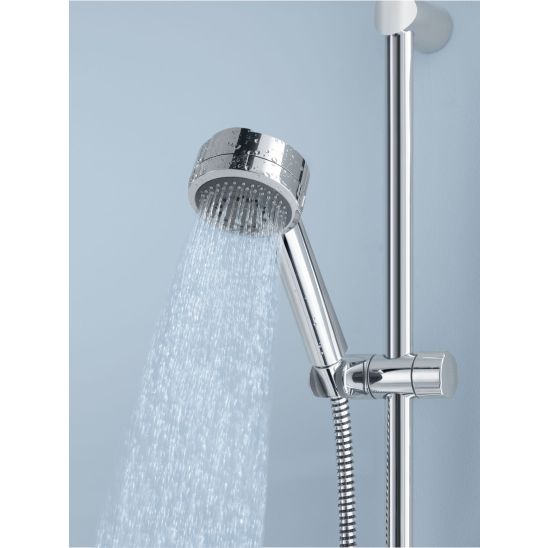 Klasická, starostlivo vyrobená rukoväť sprchy. Výrobok je vybavený jedným mimoriadne príjemným typom prúdu - dažďovou sprchou. Vďaka svojmu jednoduchému, neutrálnemu dizajnu sa rukoväť hodí do mnohých sprchových súprav. Systém rýchleho odstraňovania vodného kameňa vám pomôže udržiavať ju v dokonalej čistote, a tým predĺži jej životnosť.