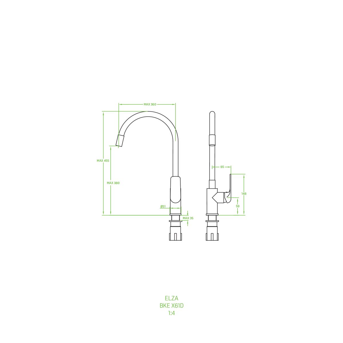 Zvislá drezová batéria Elza s flexibilným výtokom.