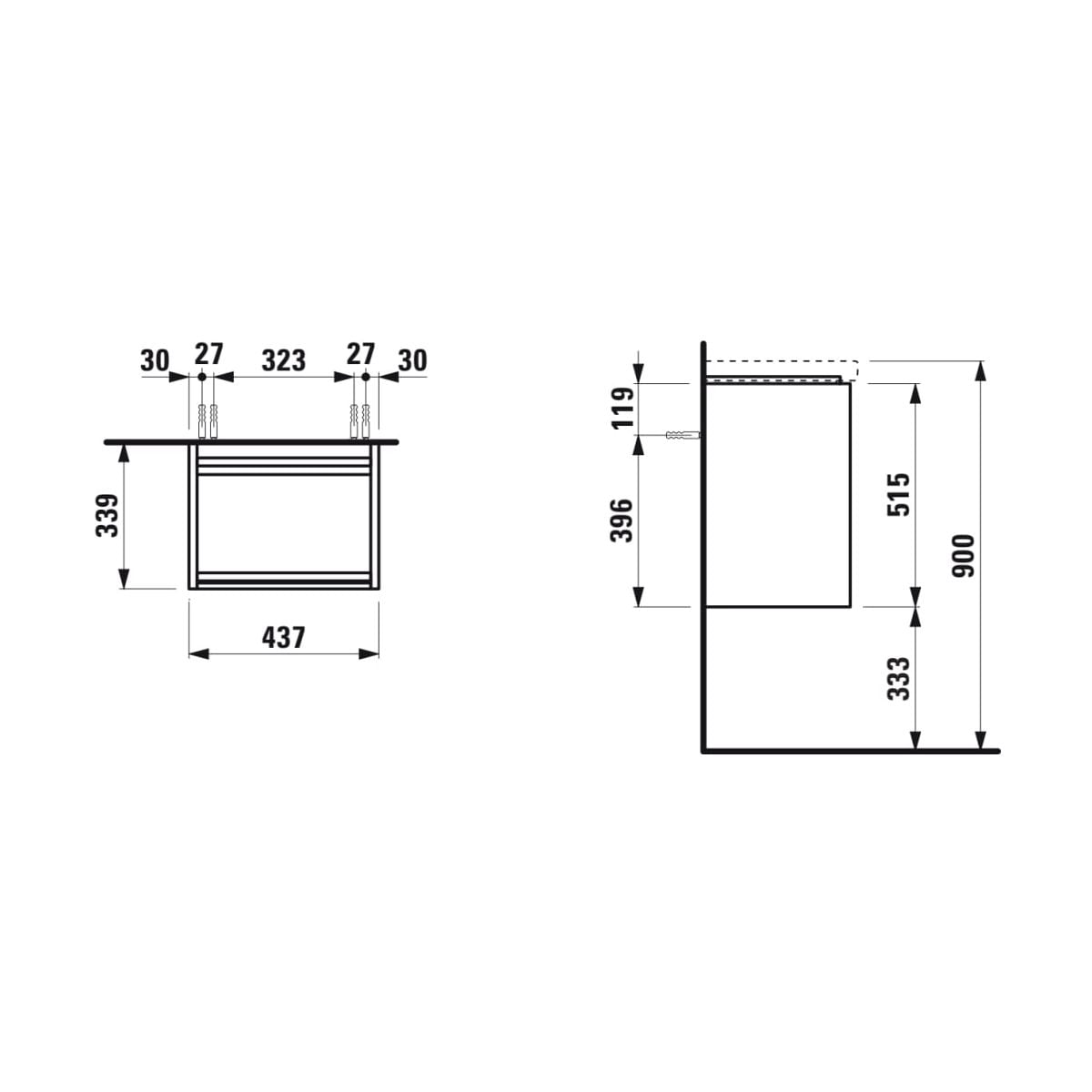 Laufen Lani skrinka 43.7x34x51.5 cm závesná kúpeľňová skrinka pod umývadlo dub H4035011122671