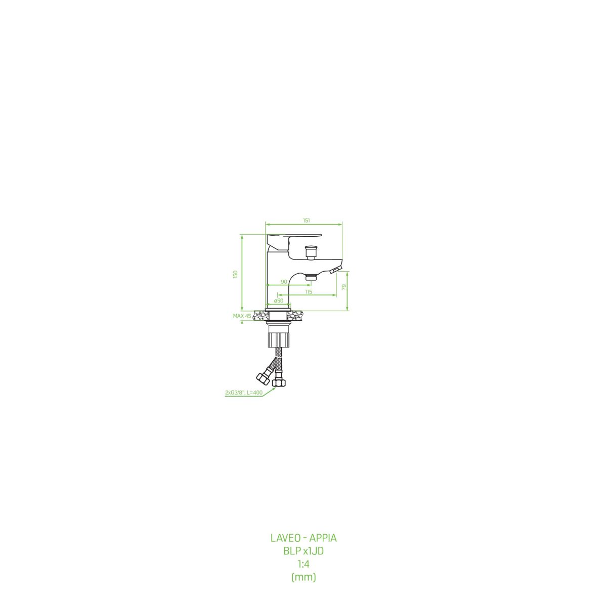 Appia - jednootvorová stojanková vaňová batéria bez sprchovej súpravy.