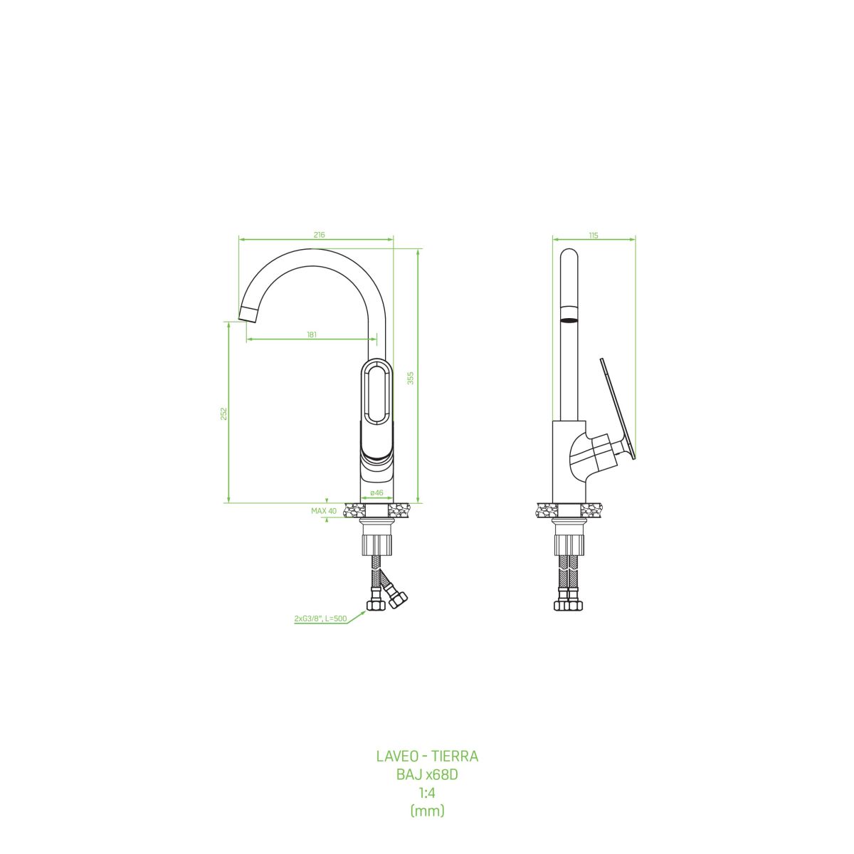 Tierra - stojánková drezová batéria s výtokom v tvare U