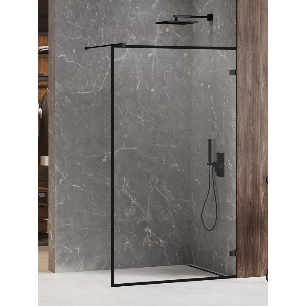 New Trendy Avexa White stena sprchového kúta walk -in 70 cm čierna matný/sklo priehľadné EXK-2657