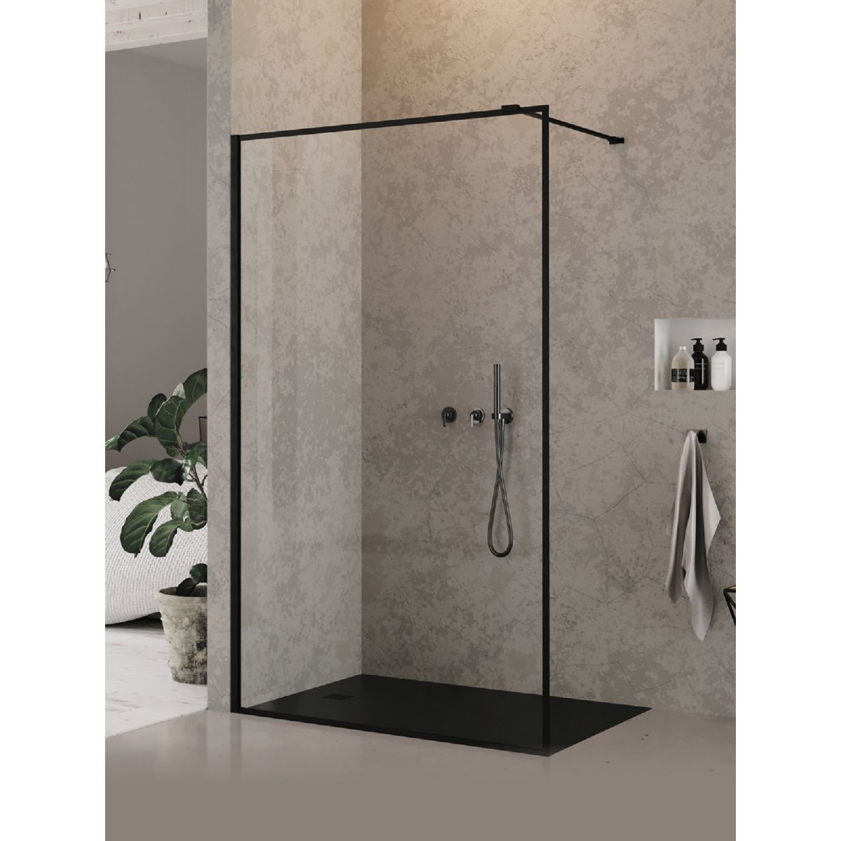 New Trendy New Modus Black stena sprchového kúta walk -in 90 cm čierna matný/sklo priehľadné EXK-5557