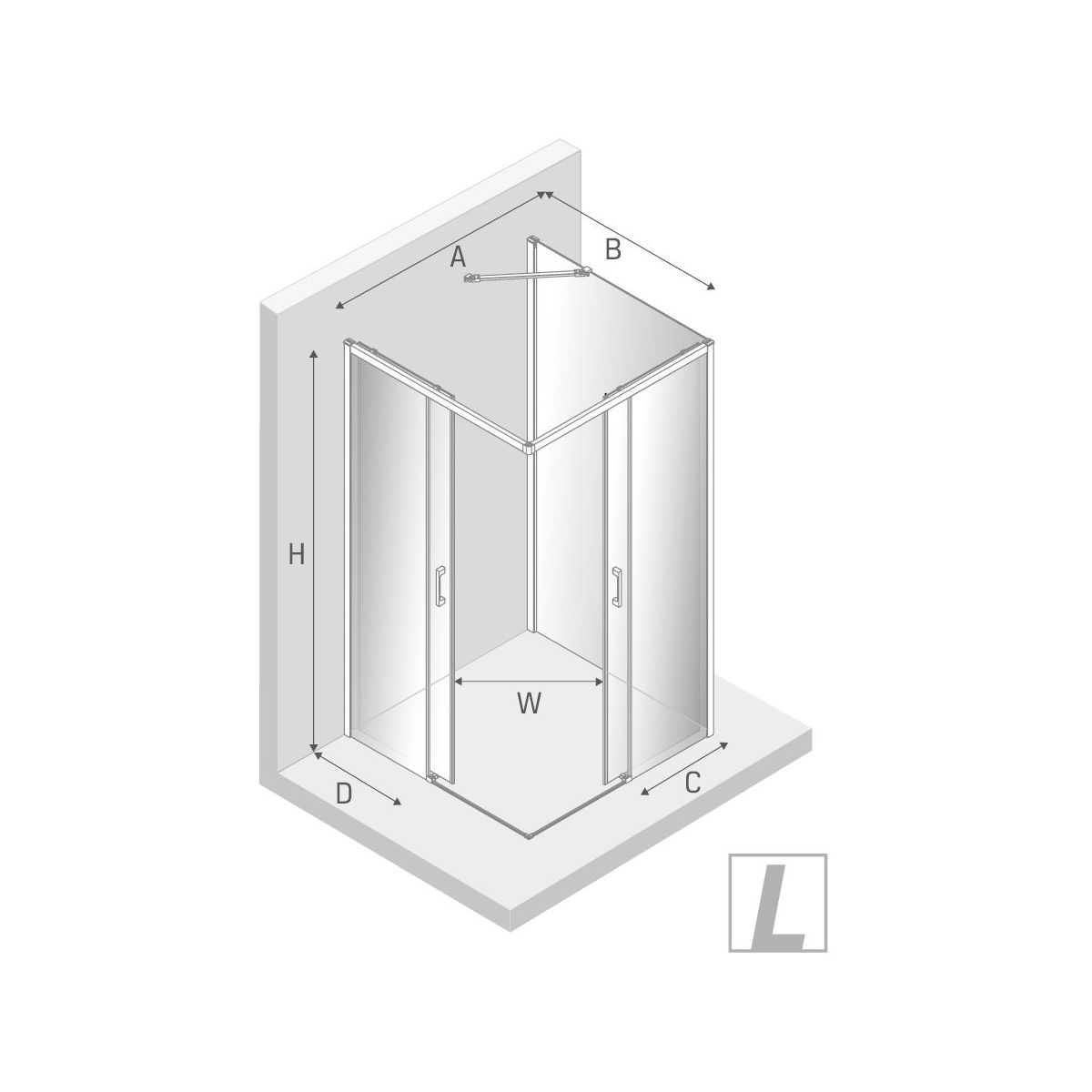 - skutočný rozmer dverí so stenou (B): 88,5 - 89,5 cm