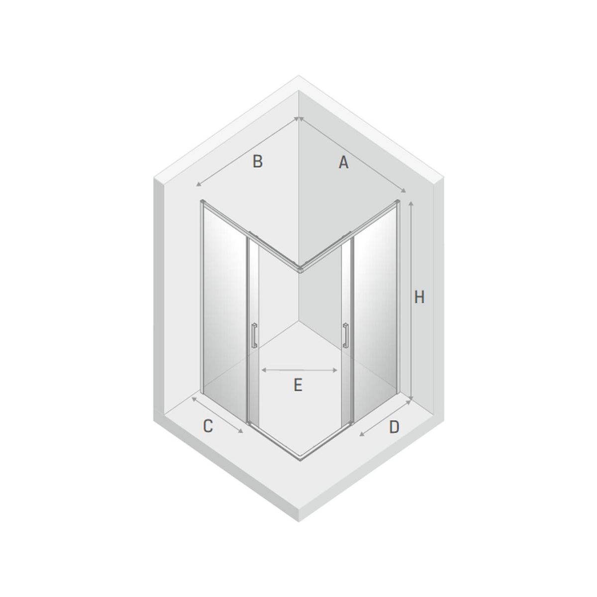 - skutočná veľkosť dverí so stenou (A): 97,5-99,5 cm