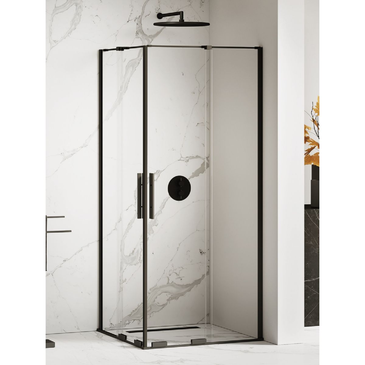 Model Smart Black má elegantné čierne detaily s matným povrchom. Sprchové kúty sú vybavené 8 mm hrubým tvrdeným bezpečnostným sklom s ochrannou vrstvou Active Shield 2.0. Výrobky z tejto kolekcie majú len spodný posuvný systém, v hornej časti je bodové vedenie. Inteligentné kabíny možno inštalovať so sprchovou vaničkou alebo bez nej.