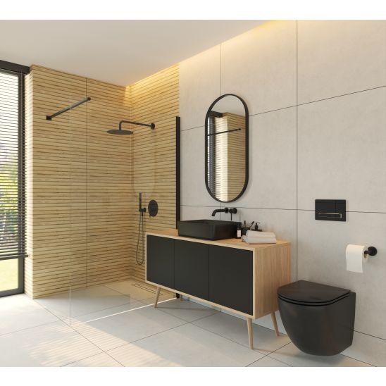 - skrinka je vyrobená z čiernej matnej lakovanej dosky, odolnej voči UV žiareniu, a laminovanej dosky v prírodnej farbe dubu