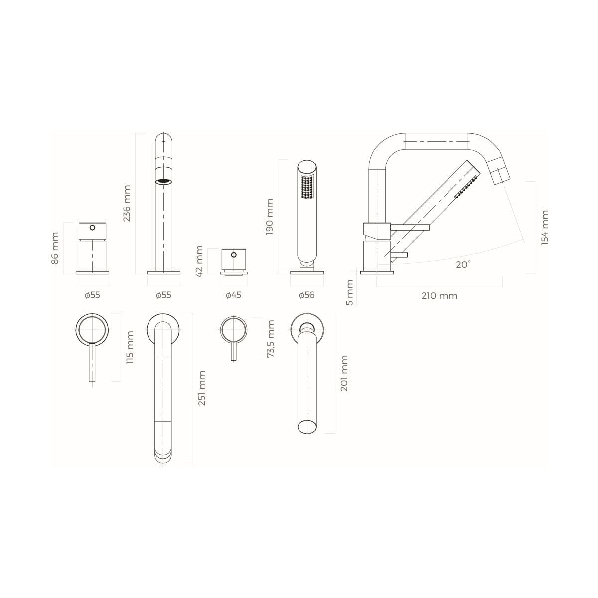 - batéria v minimalistickom a modernom štýle, ktorá je ideálna pre kúpeľne s takýmto charakterom
