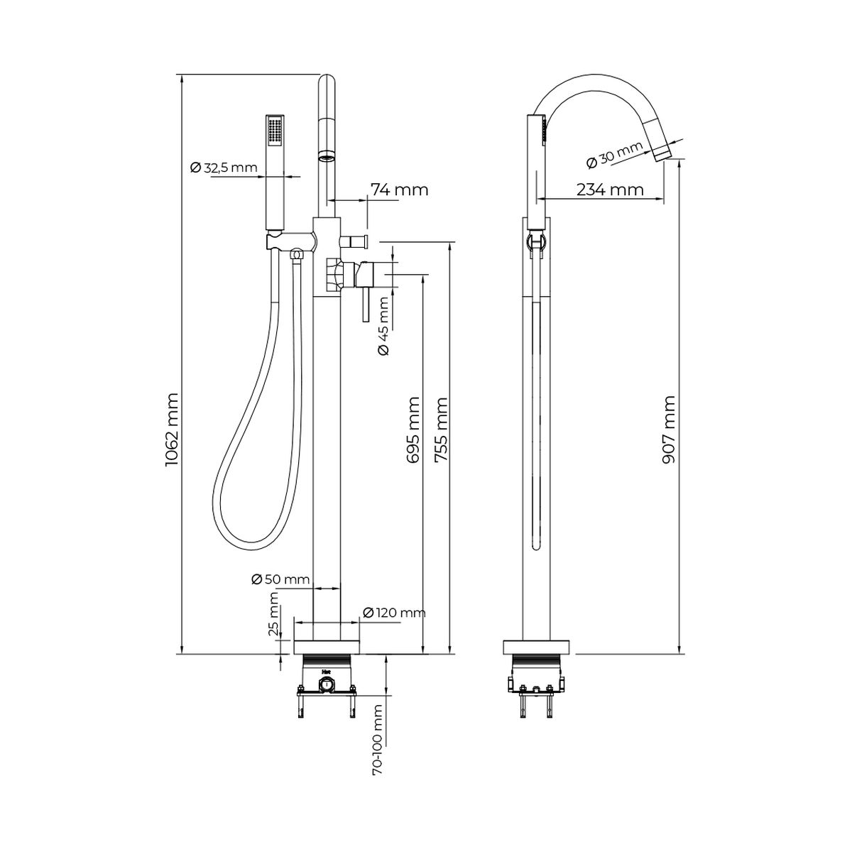 Oltens Molle vaňová/sprchová batéria voľne stojaca medená brúsené 34300610