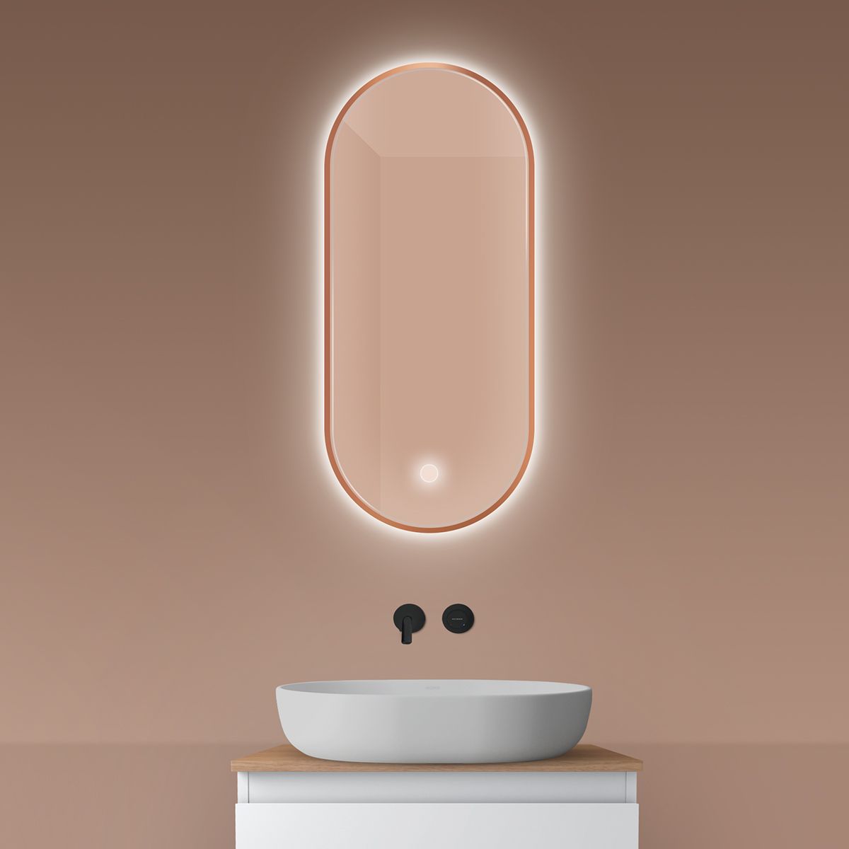 Oltens Nordlis zrkadlo 40x90 cm oválne s osvetlením s vyhrievacou podložkou 64113610