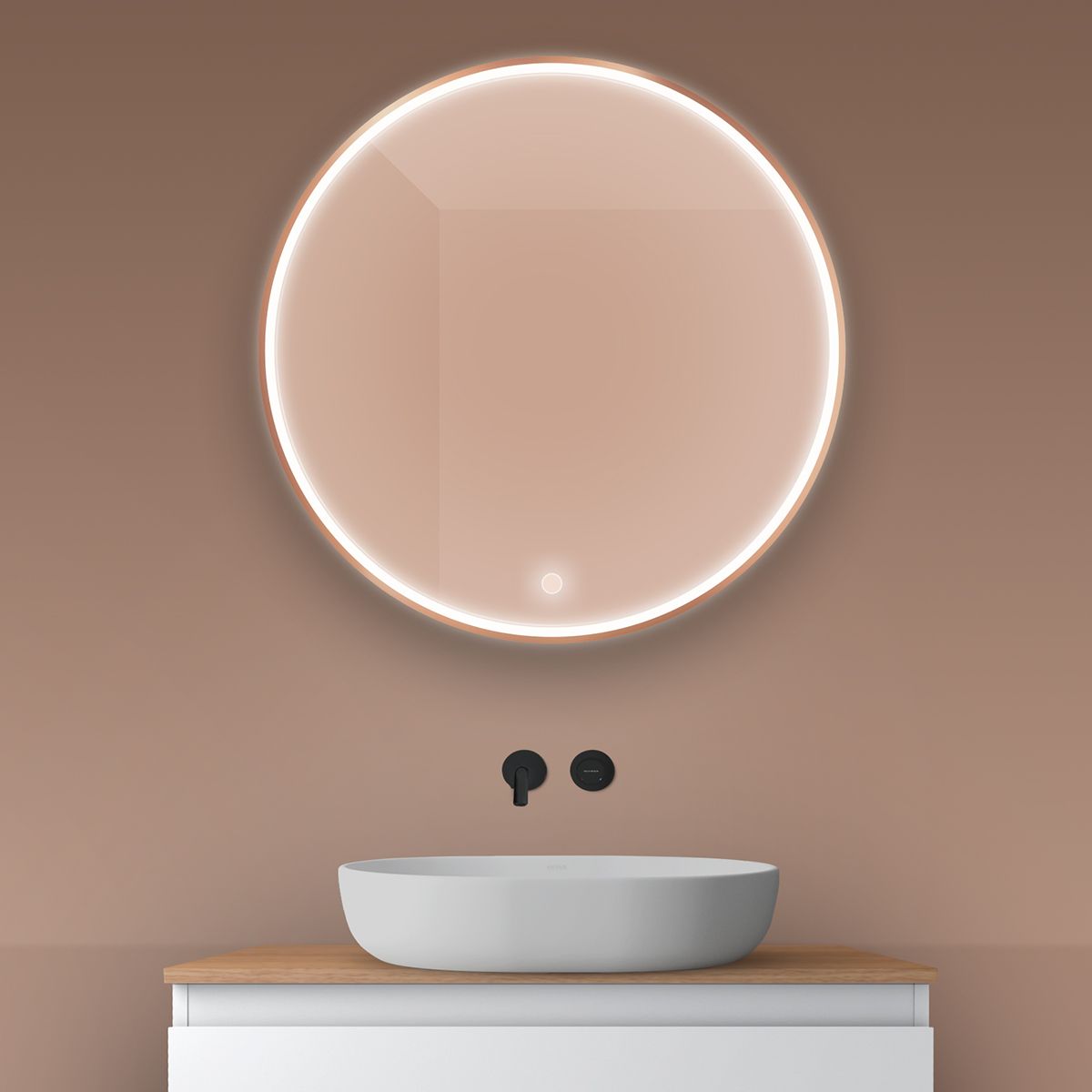 Oltens Nordlis zrkadlo 80x80 cm okrúhly s osvetlením s vyhrievacou podložkou 64101610