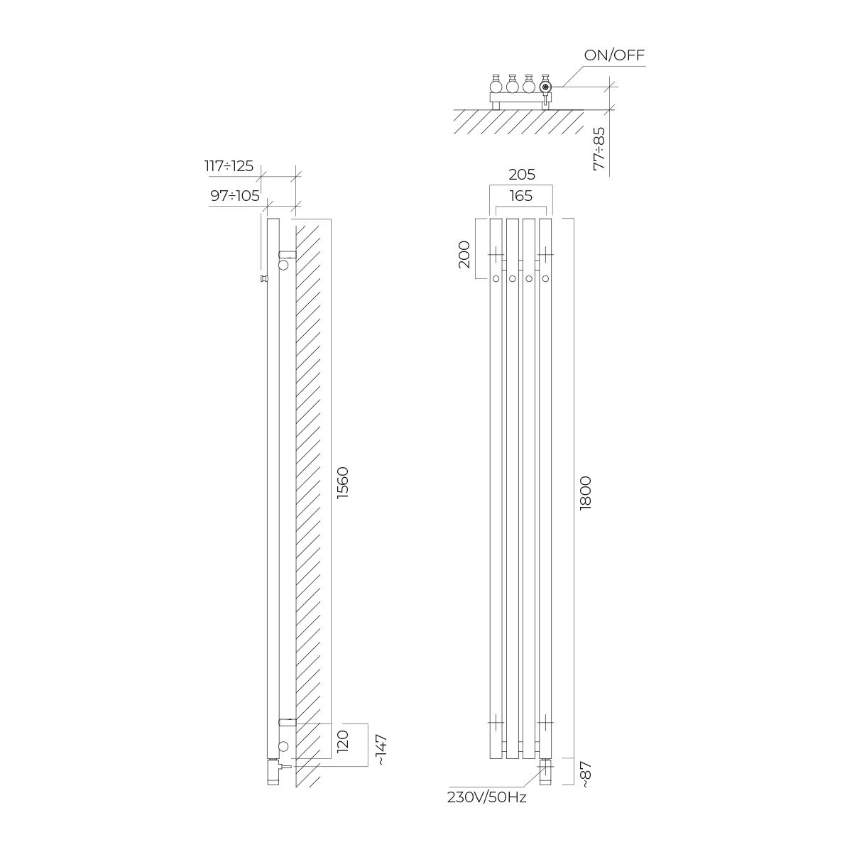 Oltens Stang elektrický radiátor 180x20.5 cm 55112610