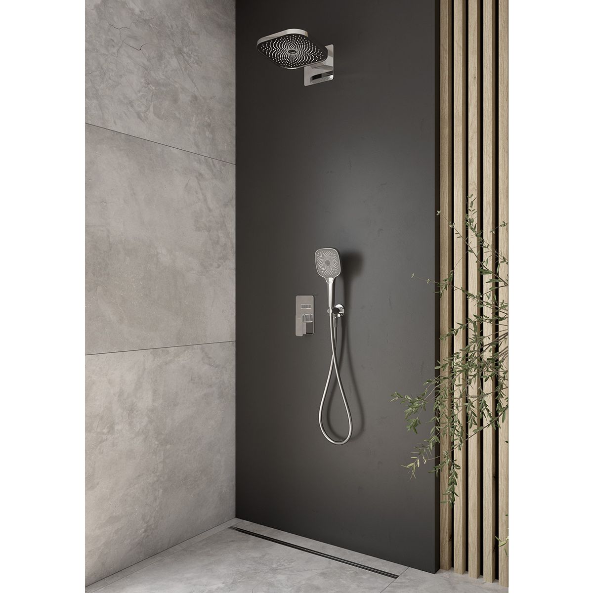Dažďová sprcha Vann (S) je dizajnový výrobok štvorcového tvaru, ktorý v sebe spája pohodlie pri používaní a starostlivé vyhotovenie. Je k dispozícii v dvoch farbách: chrómovej a matnej čiernej, čo vám umožní dokonale ho zladiť so štýlom vašej konkrétnej kúpeľne. Dažďová sprcha Vann (S) je vybavená technológiou EcoStream, ktorá zaručuje nepretržitý a rovnomerný prúd vody počas kúpania. EcoStream spája ekológiu s prirodzeným prúdom vody. označenie "Eco" znamená záväzok značky Oltens k trvalo udržateľnému šetreniu vodou a ochrane životného prostredia. "Stream" evokuje obraz plynulého, nepretržitého toku vody, čím zdôrazňuje účinnosť a pohodlie výrobkov značky Oltens, ktoré zvyšujú funkčnosť a pôžitok z používania. Dažďová sprcha má guľový kĺb, ktorý umožňuje nastavenie uhla. Silikónové rozprašovacie dýzy umožňujú jednoduché odstránenie usadeného vodného kameňa - technológia PureFlow.