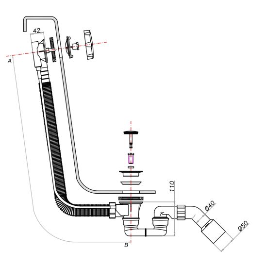 - dĺžka: do 81 cm (možno použiť pre vane s väčšou vzdialenosťou medzi prepadovým a odtokovým otvorom, ako je štandardná vzdialenosť)