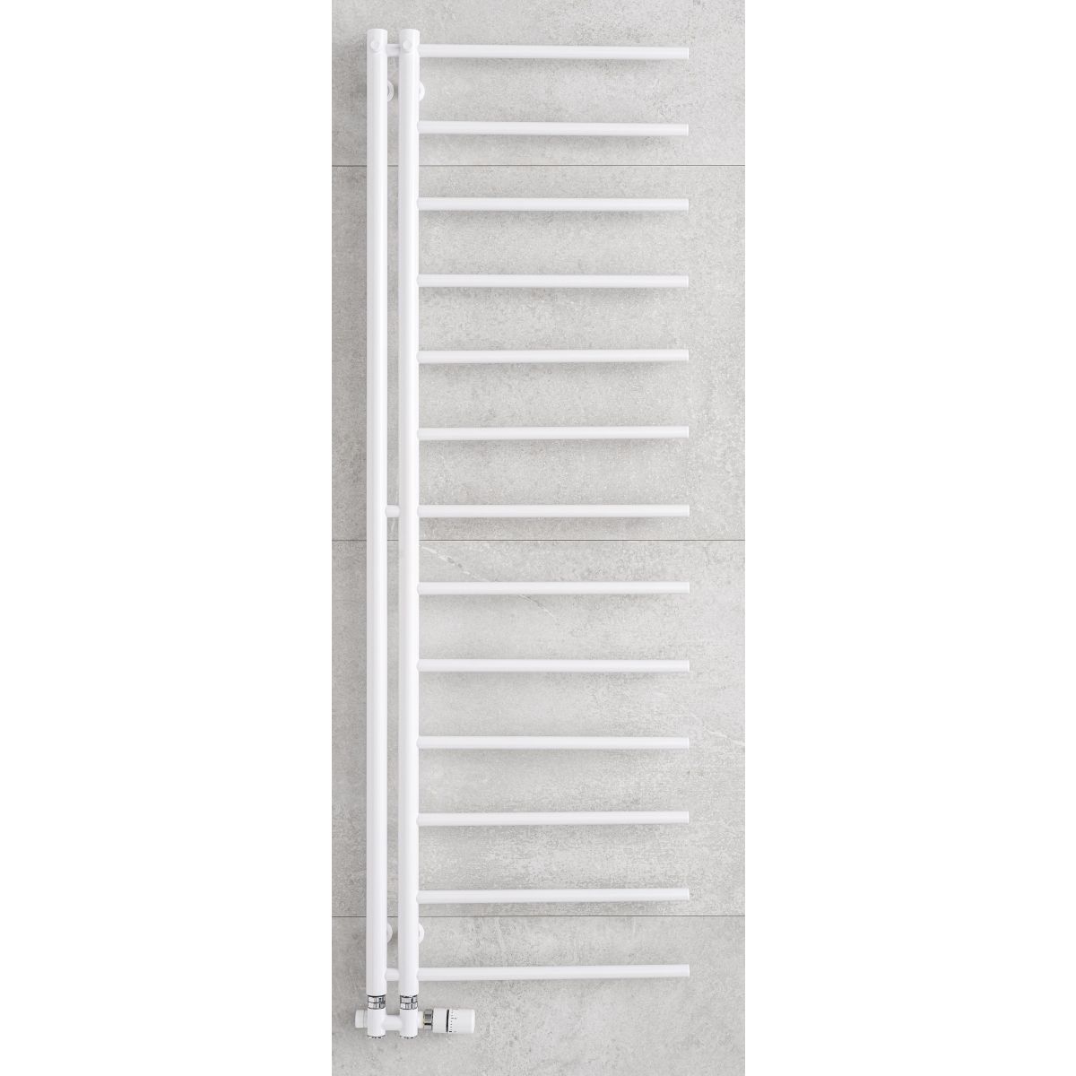 Dostupné veľkosti a varianty: Radiátor Apollo sa dodáva v dvoch praktických výškach a v ľavostrannej alebo pravostrannej verzii, takže ho ľahko prispôsobíte usporiadaniu vašej kúpeľne. Radiátor má centrálne pripojenie.