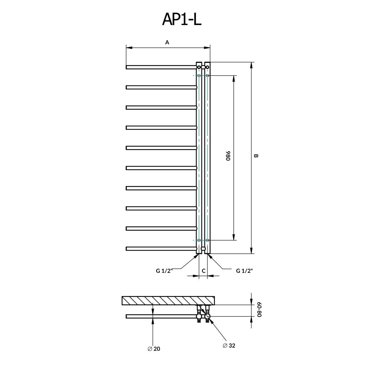 Dostupné veľkosti a varianty: Radiátor Apollo sa dodáva v dvoch praktických výškach a v ľavostrannej alebo pravostrannej verzii, takže ho môžete ľahko prispôsobiť usporiadaniu vašej kúpeľne. Radiátor má centrálne pripojenie.