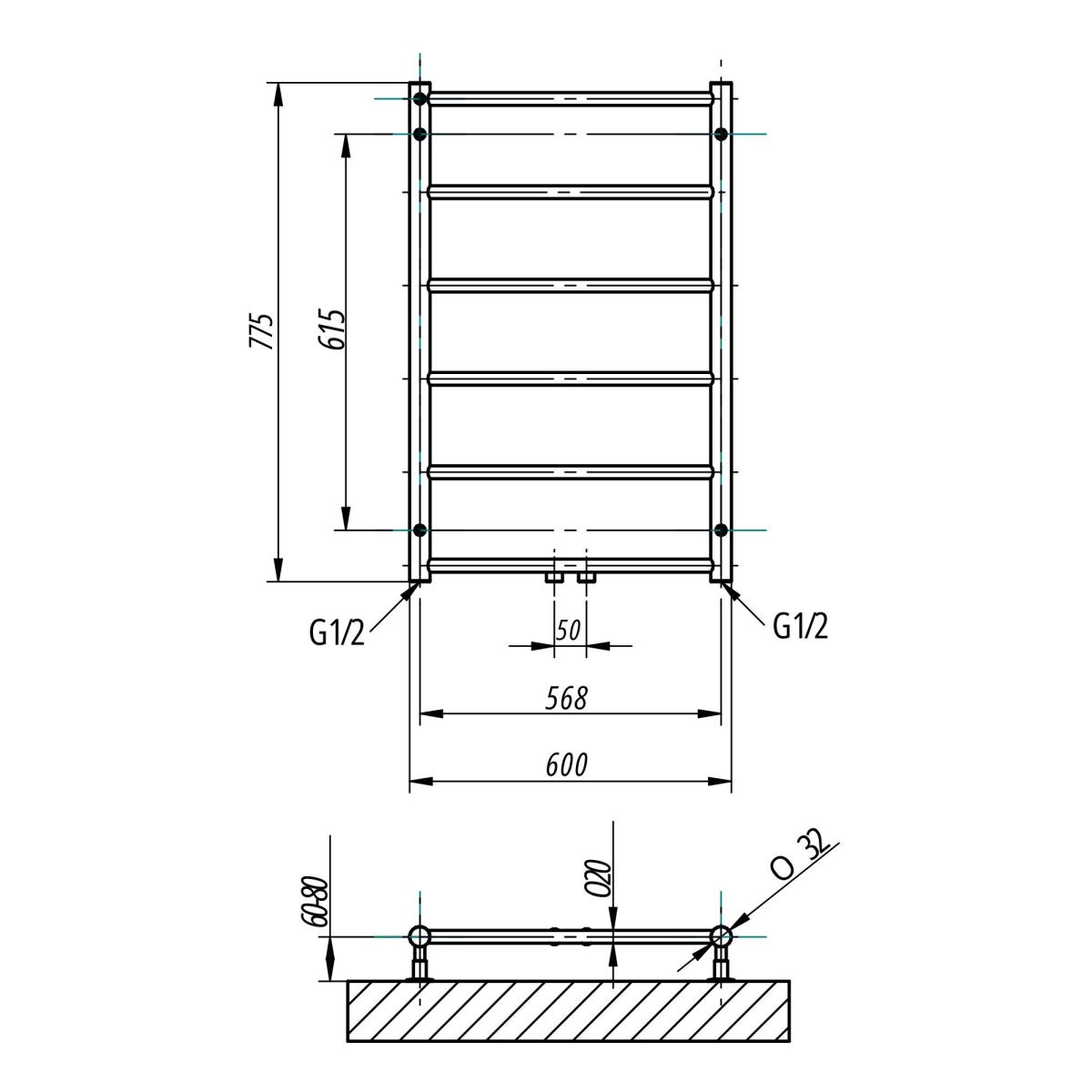 P.M.H. Naas kúpeľňový radiátor rebríkový 77.5x60 cm chrómová NS2C-M
