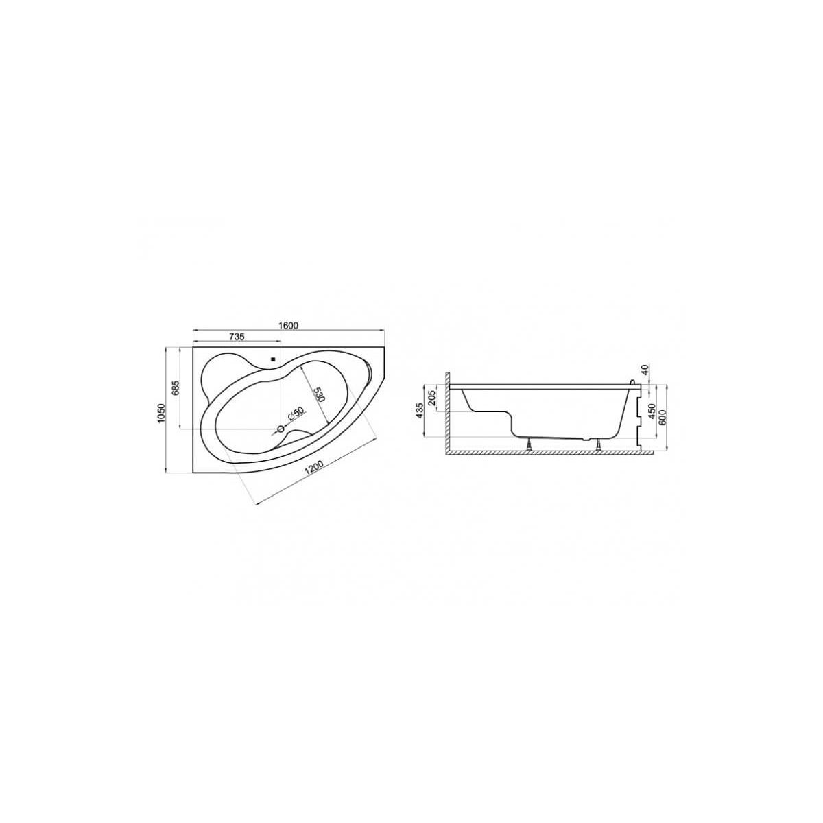 Polimat Mega rohová vaňa 160x105 cm ľavostranné biela 00230