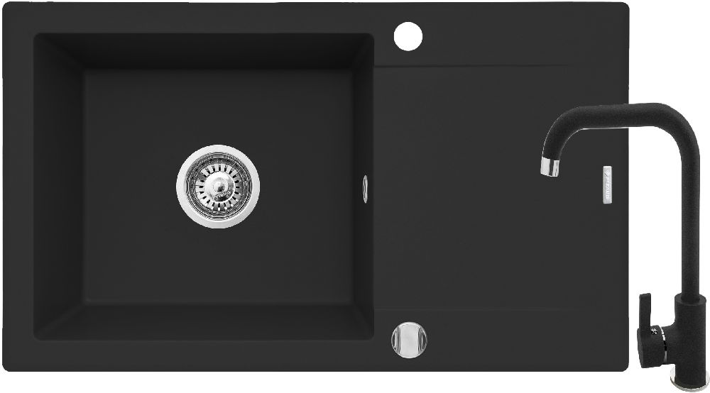 Sada sopečných drezov Pyramis KORFU (78x46) 1B 1D - tmavočierna bez škvŕn + batéria SILVIO