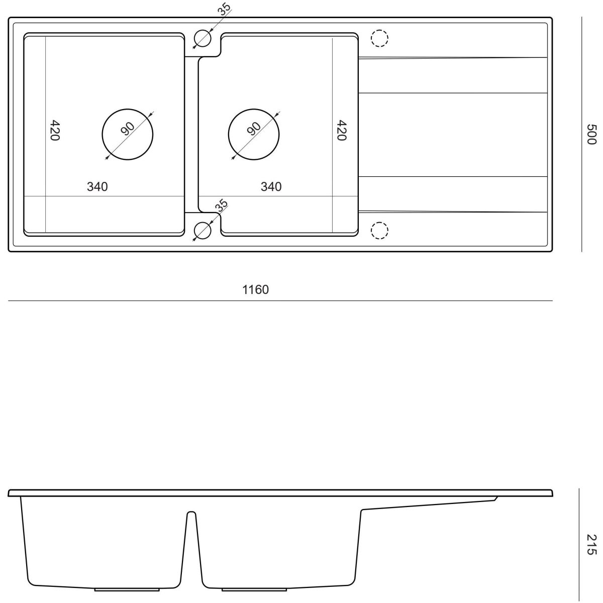 - obojstranný drez - misu možno namontovať na pravú alebo ľavú stranu