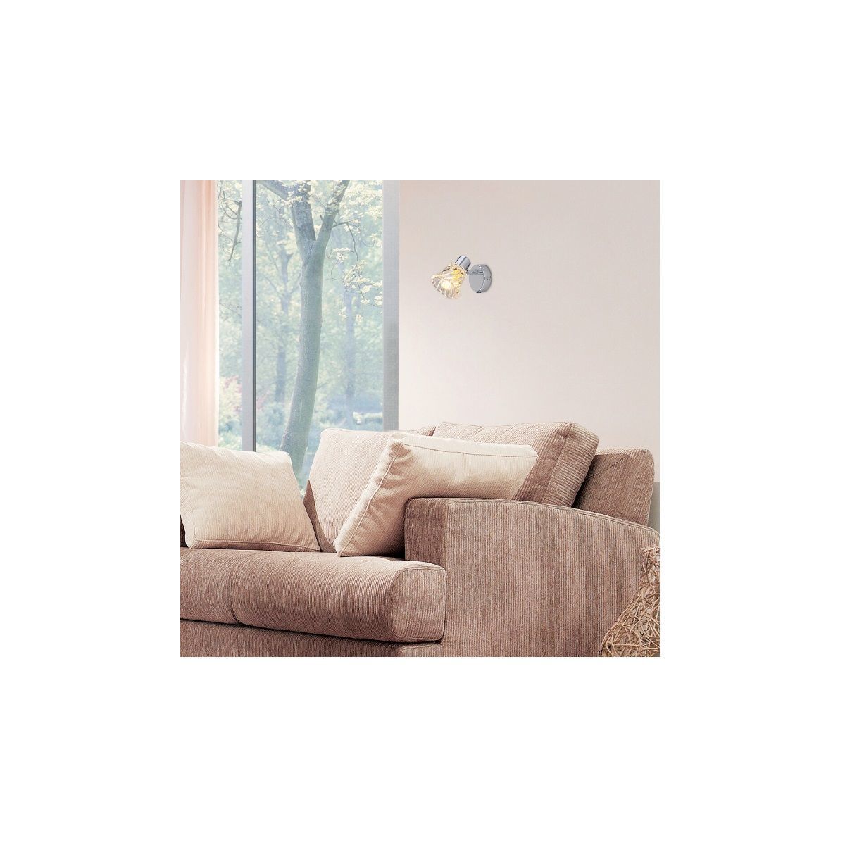Reflektor Hestia v klasickom štýle bude elegantným doplnkom vo vašej obývačke alebo spálni. Kovové kovanie v chrómovej farbe dopĺňa priehľadné sklenené tienidlo. Svietidlo možno pripevniť na stenu pomocou okrúhleho ozdobného podstavca. Charakteristickým znakom zvonovitého tienidla je efekt krútenia jeho zvlneného povrchu.