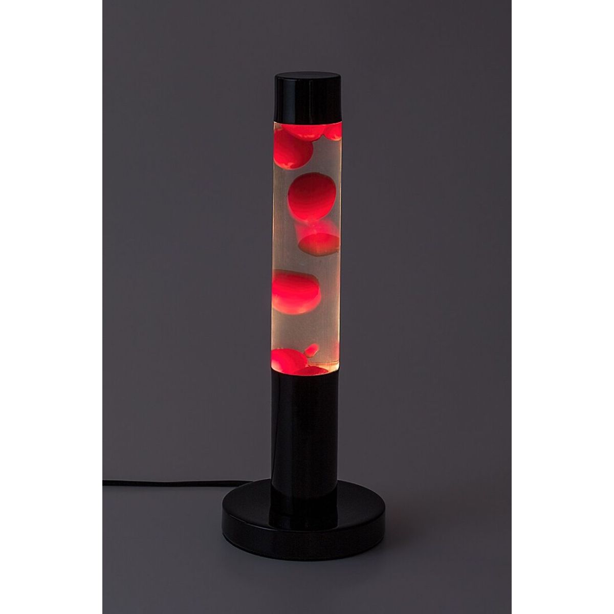 - vo vnútri lampy je priehľadná kvapalina s červeným voskom, ktorá sa pomaly pohybuje tam a späť
