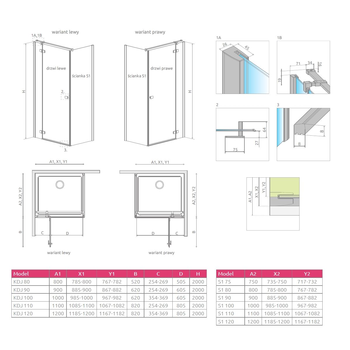 - kompletná kabína pozostávajúca z dverí KDJ a S-steny