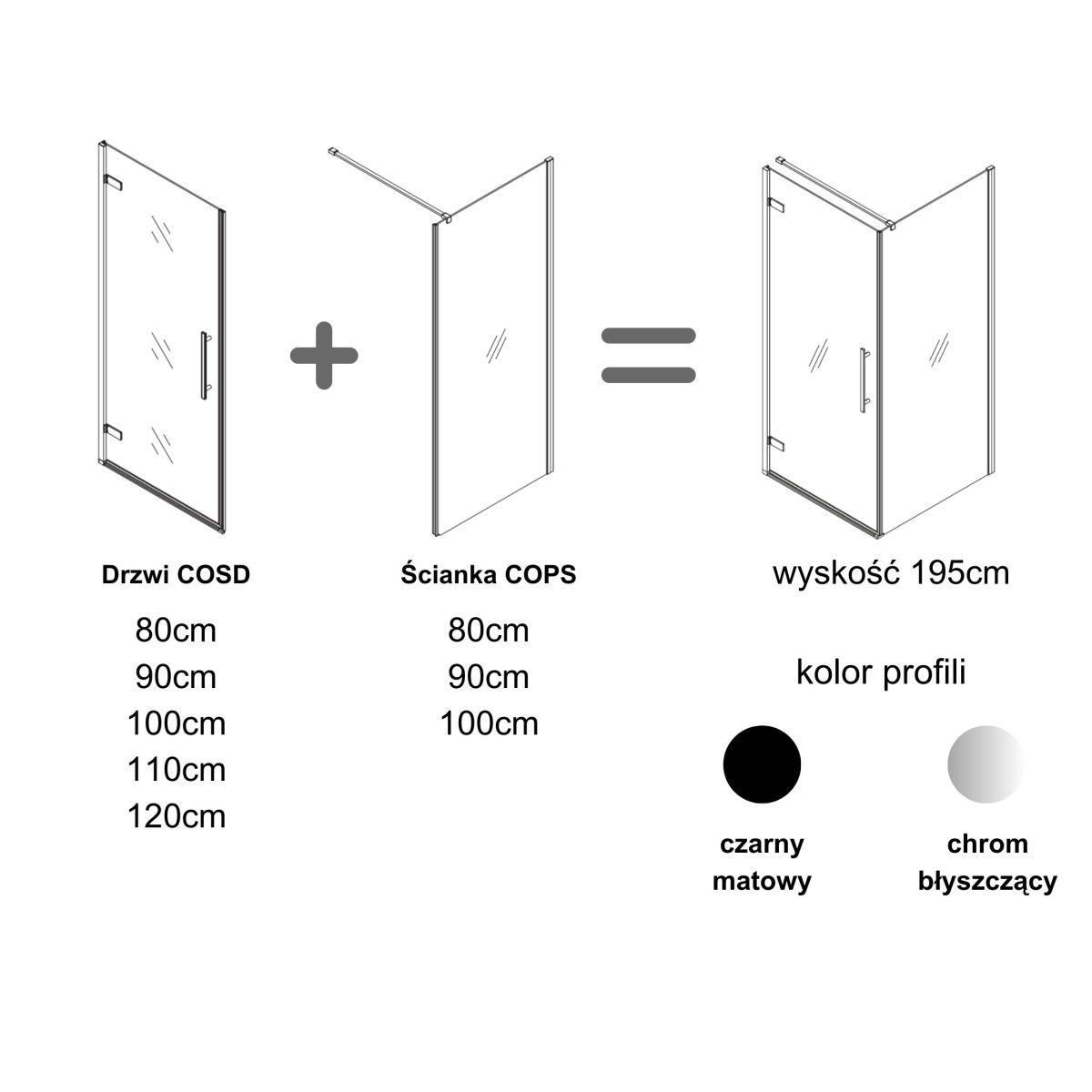 - dvere je možné kombinovať s pevnou stenou COPS (80,90,100) a vytvoriť tak sprchový kút, stenu je potrebné zakúpiť samostatne!