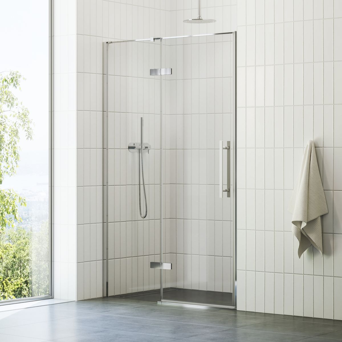 Dvojdielne sprchové dvere Cool! V chrómovom vyhotovení s výplňou z číreho skla s ochrannou vrstvou Ravak AntiCalc®. Výklopný systém otvárania. Univerzálny výrobok, pravé a ľavé prevedenie nie je k dispozícii.