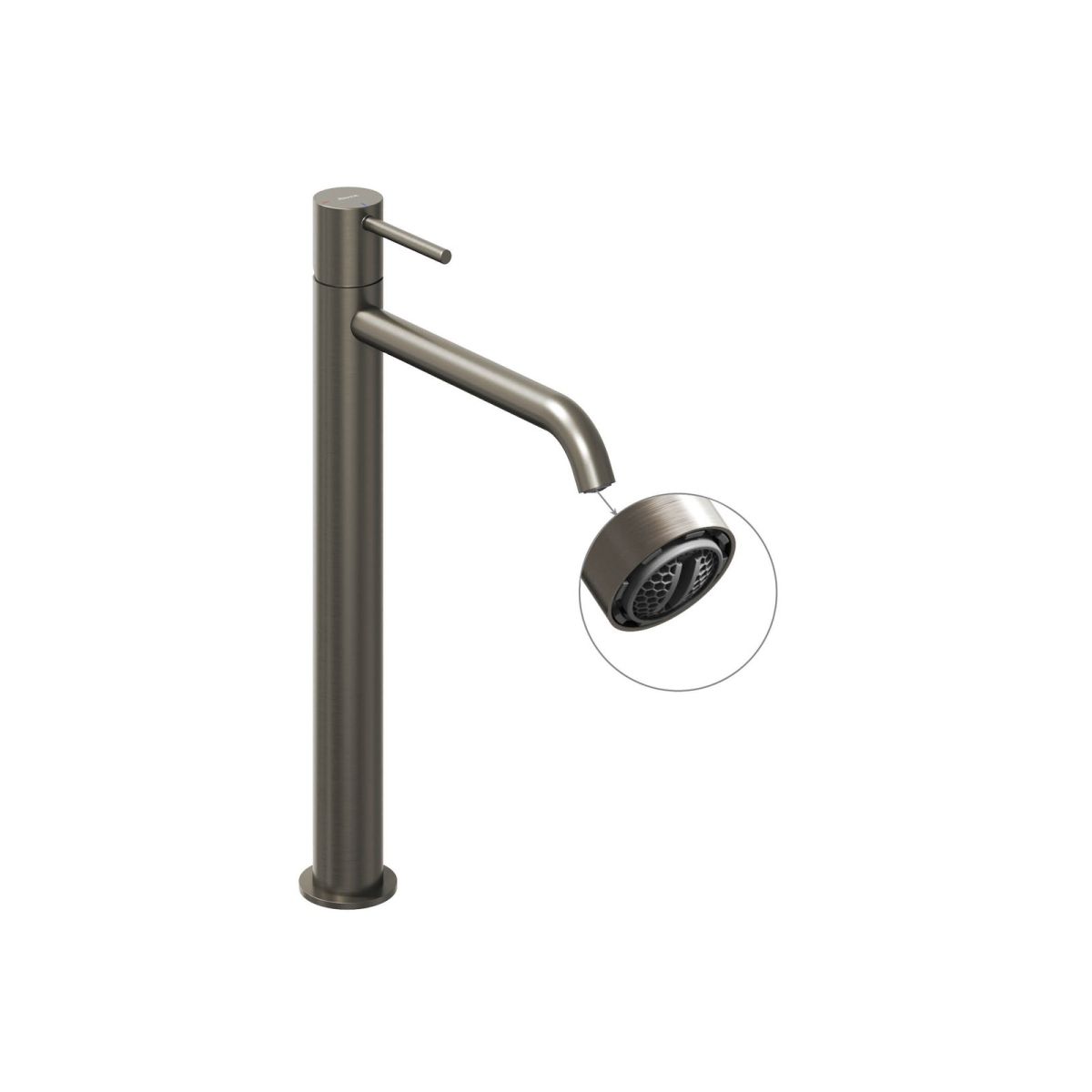 Stojanová batéria k umývadlu Espirit, bez výpustného ventilu. Povrchová úprava brúsený grafit. S integrovaným perlátorom s funkciou EcoFlow. Funkcia BeCool na úsporu vody.