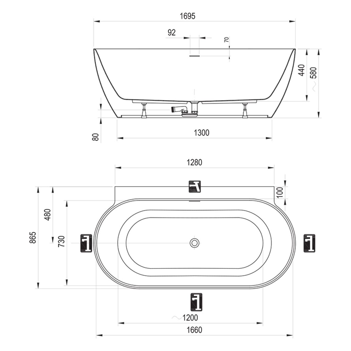 Vaňu nie je možné doplniť o vanový paravan. Sada odtokov (t. j. prepad, sifón) a podpery (nožičky) sú súčasťou balenia.