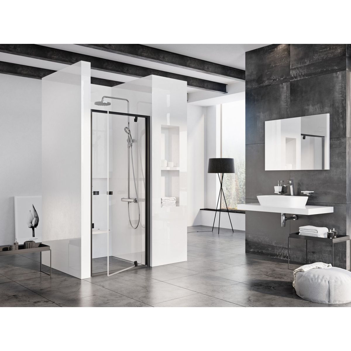 - dvere je možné kombinovať s pevnou stenou PPS (80, 90, 100) a vytvoriť tak sprchový kút; stenu je potrebné zakúpiť samostatne!