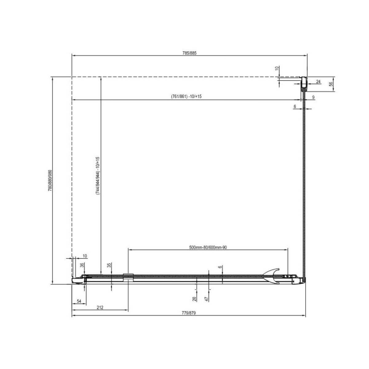 Menšie stavebné nepresnosti? Nebojte sa – Pivot má riešenie. Jeho montážne profily umožňujú nastavenie sprchového kúta až o 50 milimetrov na každej strane.