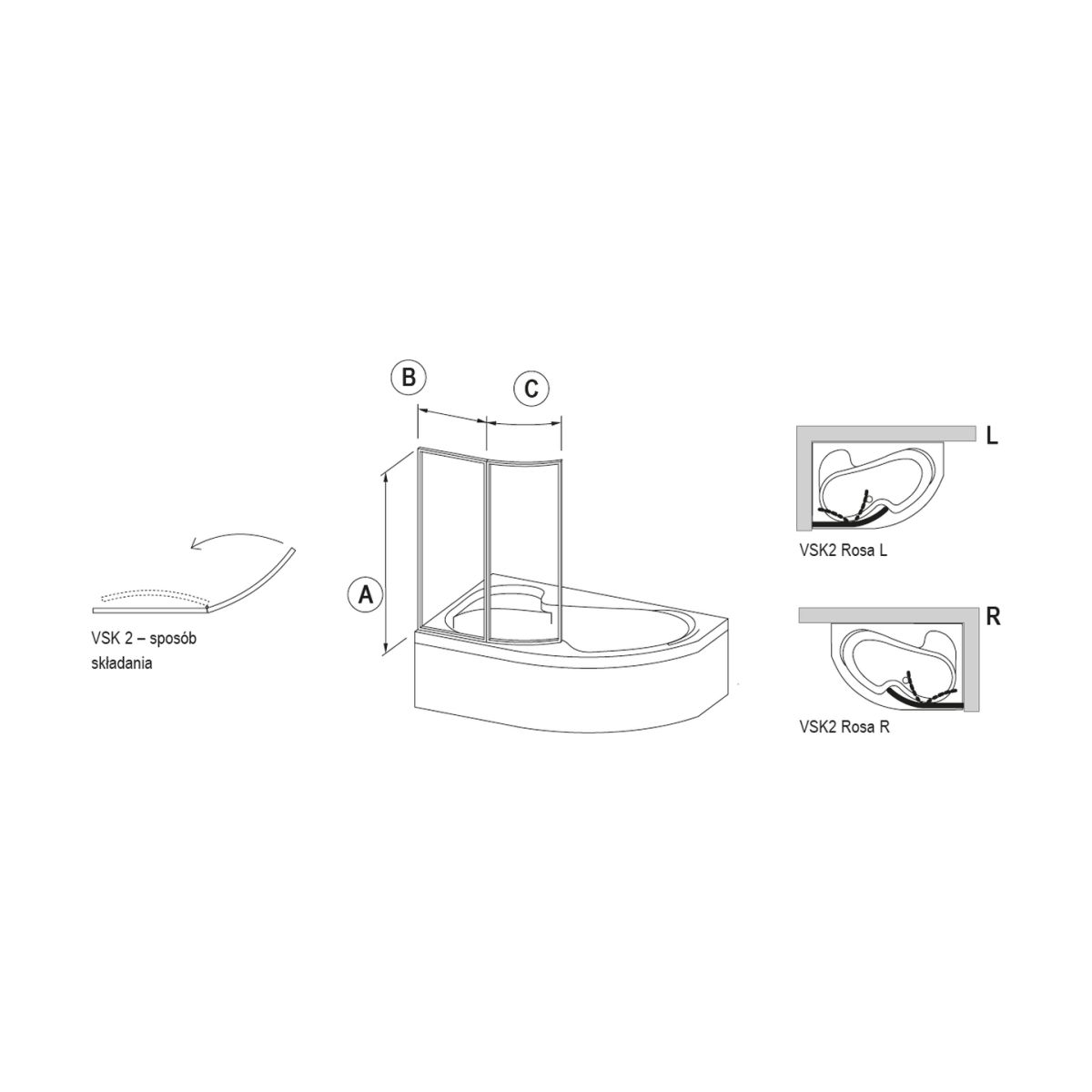 Ravak Rosa vaňová zástena 99 cm dvojdielny biela lesklé/číre sklo 76P90100Z1