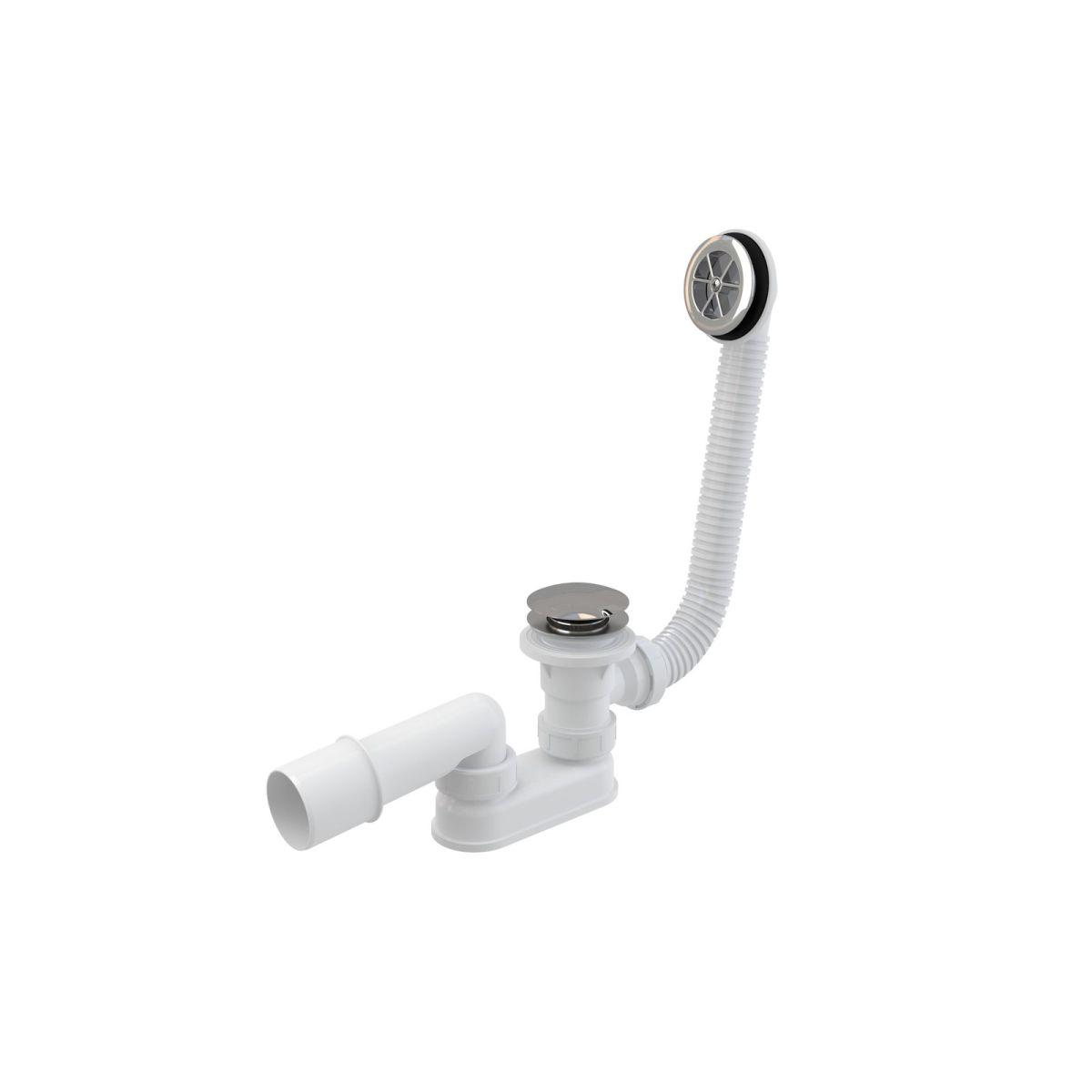 Sifón pre hlbokú sprchovú vaničku Sabina s kovovým krytom v lesklom chrómovom vyhotovení.