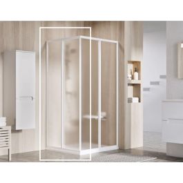 1/2 rohová sprchová zástena Supernova v bielej farbe s nepriehľadným sklom Grape s ochrannou vrstvou Ravak AntiCalc®. Posuvný otvárací systém.