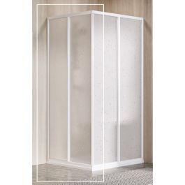 1/2 rohová sprchová zástena Supernova v bielej farbe s plastovou výplňou Pearl decor. Posuvný otvárací systém.