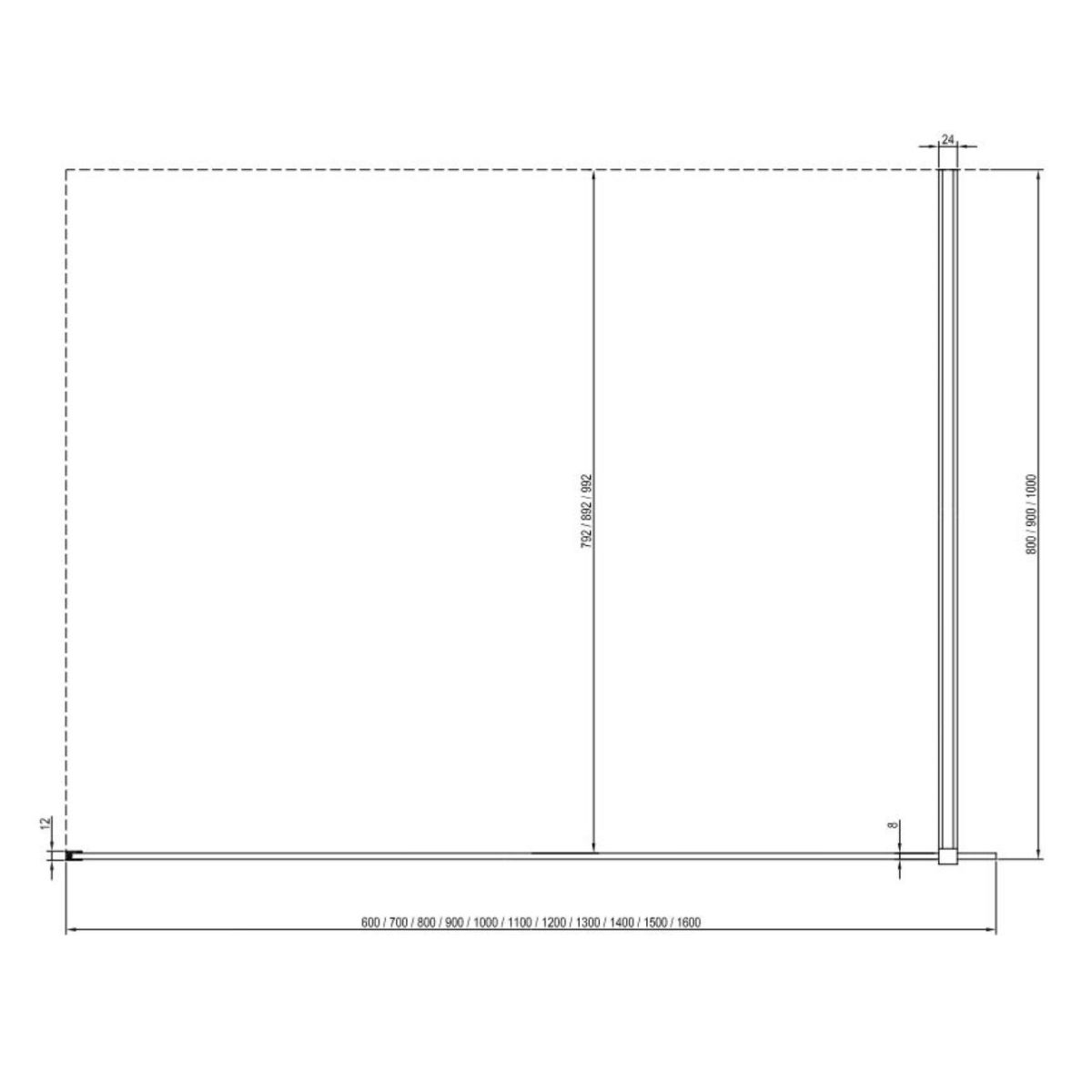 - šírka pevnej sklenenej steny Walk-In Wall: 140 cm