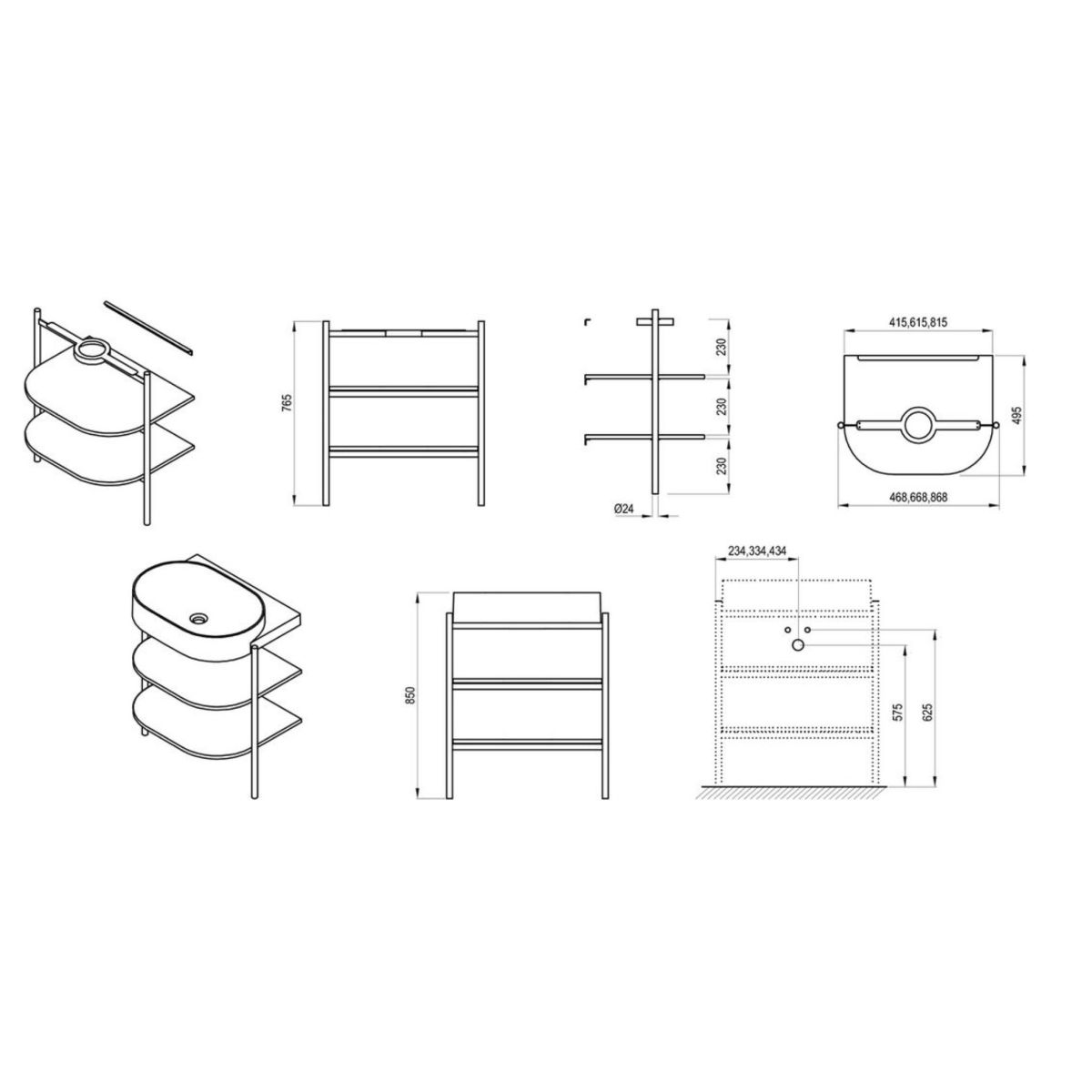 Stojaca kovová konštrukcia s policami CS Yard 40 na montáž umývadla Yard 40. V alabastrovo ružovej farbe.