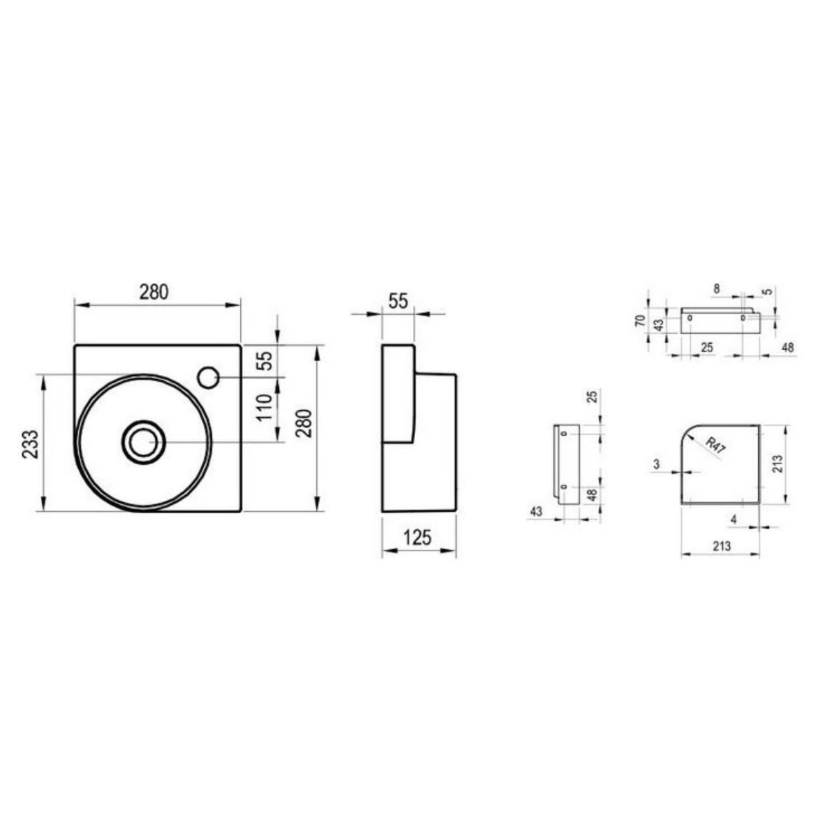 - príslušenstvo, ktoré je potrebné dokúpiť: konzola Yard 28 C, pevná zátka umývadla, otvorená zátka umývadla Flat, antracit, sifón umývadla, umývadlová batéria