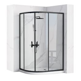 Rea Look sprchovací kút 90x90 cm polkruhová čierna polomatné/priehľadné sklo REA-K7903