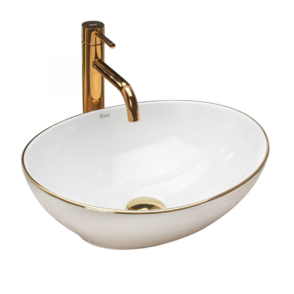 Rea Sofia umývadlo 41x34.5 cm oválny pultové umývadlo biela-dvojfarebná-zlatá REA-U3287
