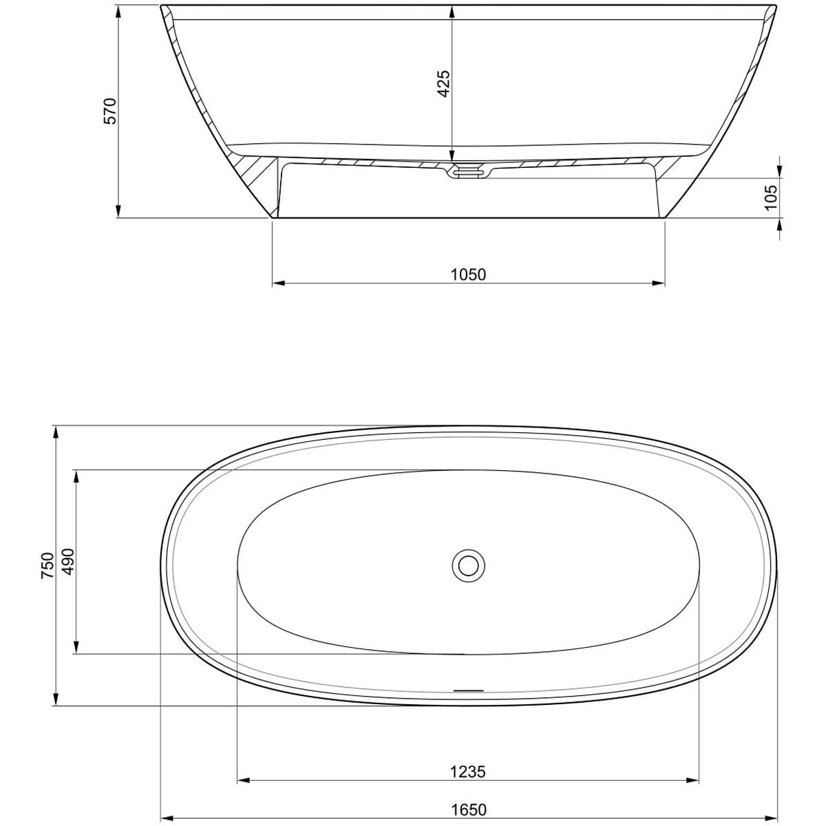 Roca Ariane voľne stojaca vaňa 165x75 cm oválne dvojfarebná A2484700B0