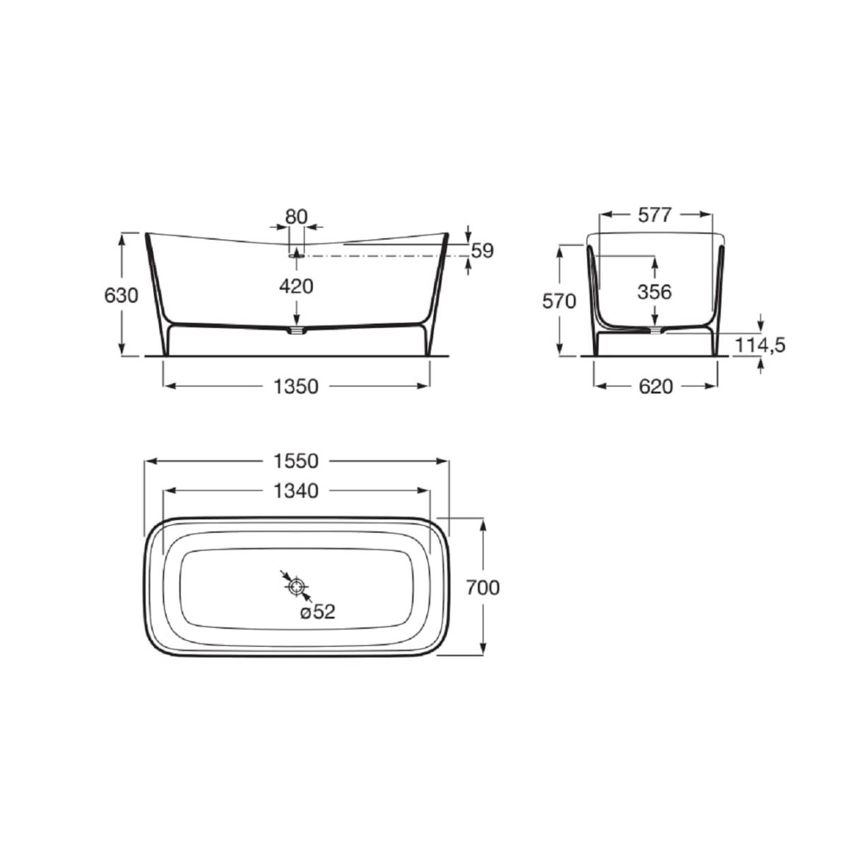 Roca Maui voľne stojaca vaňa 155x70 cm obdĺžnikové biela-dvojfarebná A2485020B0