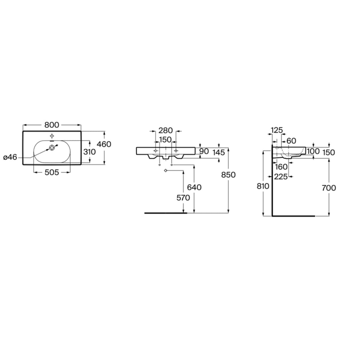Roca Meridian umývadlo 80x46 cm obdĺžnik klasické umývadlo-umývadlo na nábytok čierna A327745080