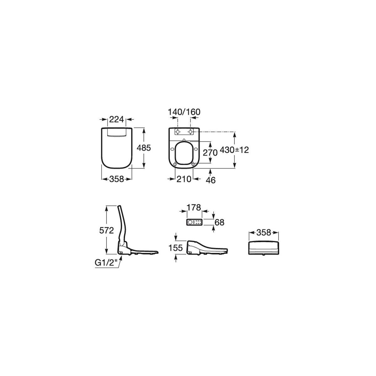 - Funkcie: vyhrievané sedadlo, podsvietenie, regulácia teploty vody, samočistiace rameno trysky, sušenie vzduchom, odstraňovanie zápachu