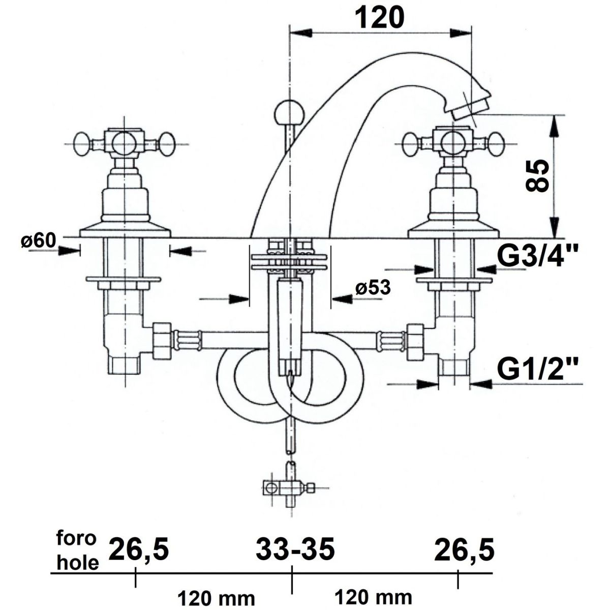 - štandardne sa dodáva s označením teplej a studenej vody v češtine, anglické označenie je súčasťou dodávky